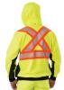 fluorescent yellow-lime or orange grosgrain material industrial wash. Reflective