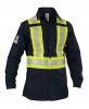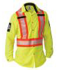 144HVP 4.0 OZ RIPSTOP100% Polyester Banded collar with pelon & stays 2 Mic loops on each side (4 total mic loops) 2 Front chest pockets Pencil division on both pockets Hemmed front with button closure Cuffs with button closure Back yoke High resistance thread Segmented tape is more comfortable & breathable 3M™ scotchlite™ reflective